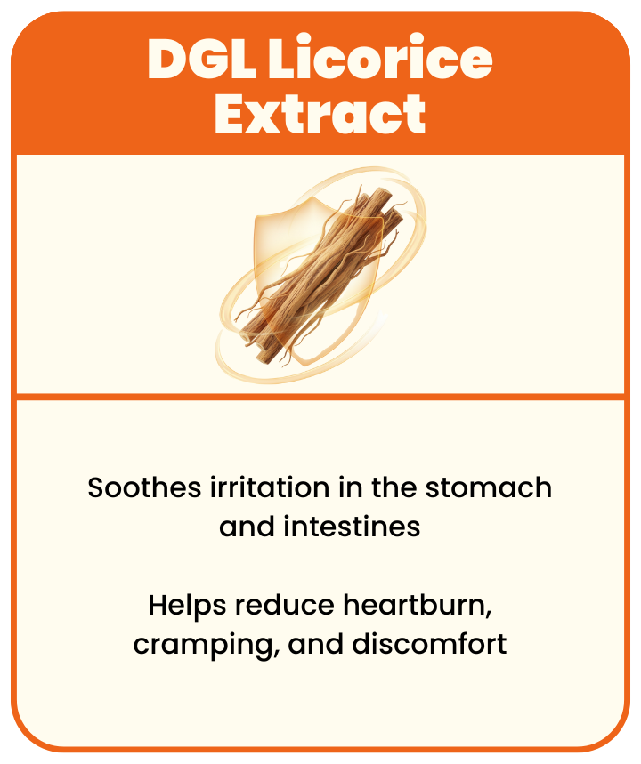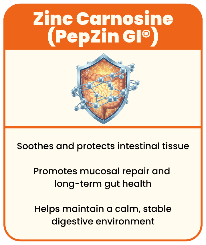 DGL Licorice, L-Glutamine, and Zinc Carnosine repair and strengthen your gut wall, reducing irritation and restoring proper nutrient absorption.