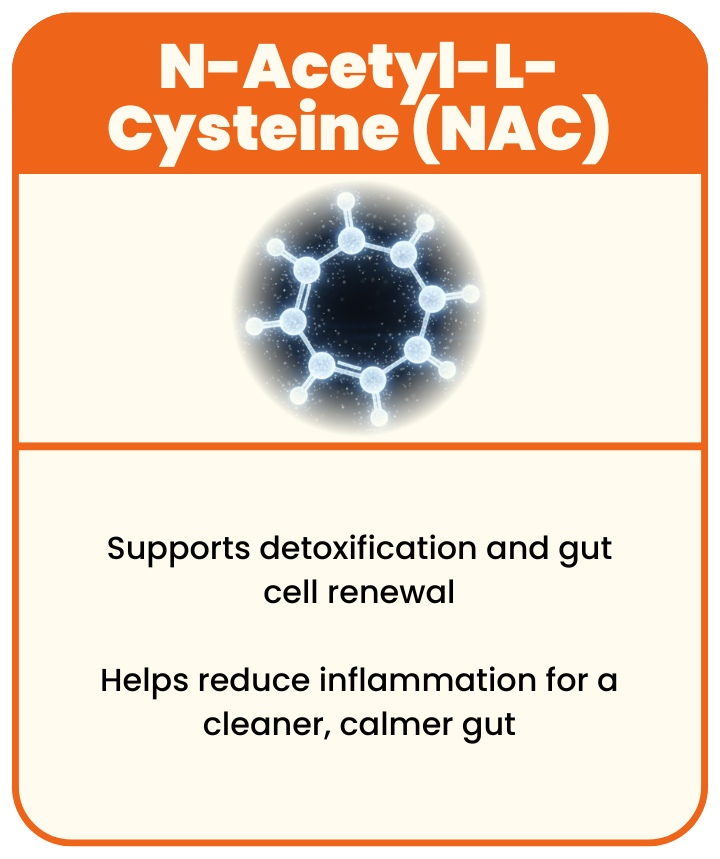 N-Acetyl-L-Cysteine breaks down stubborn biofilms, while L-Theanine calms the gut-brain axis so your system can finally reset.
